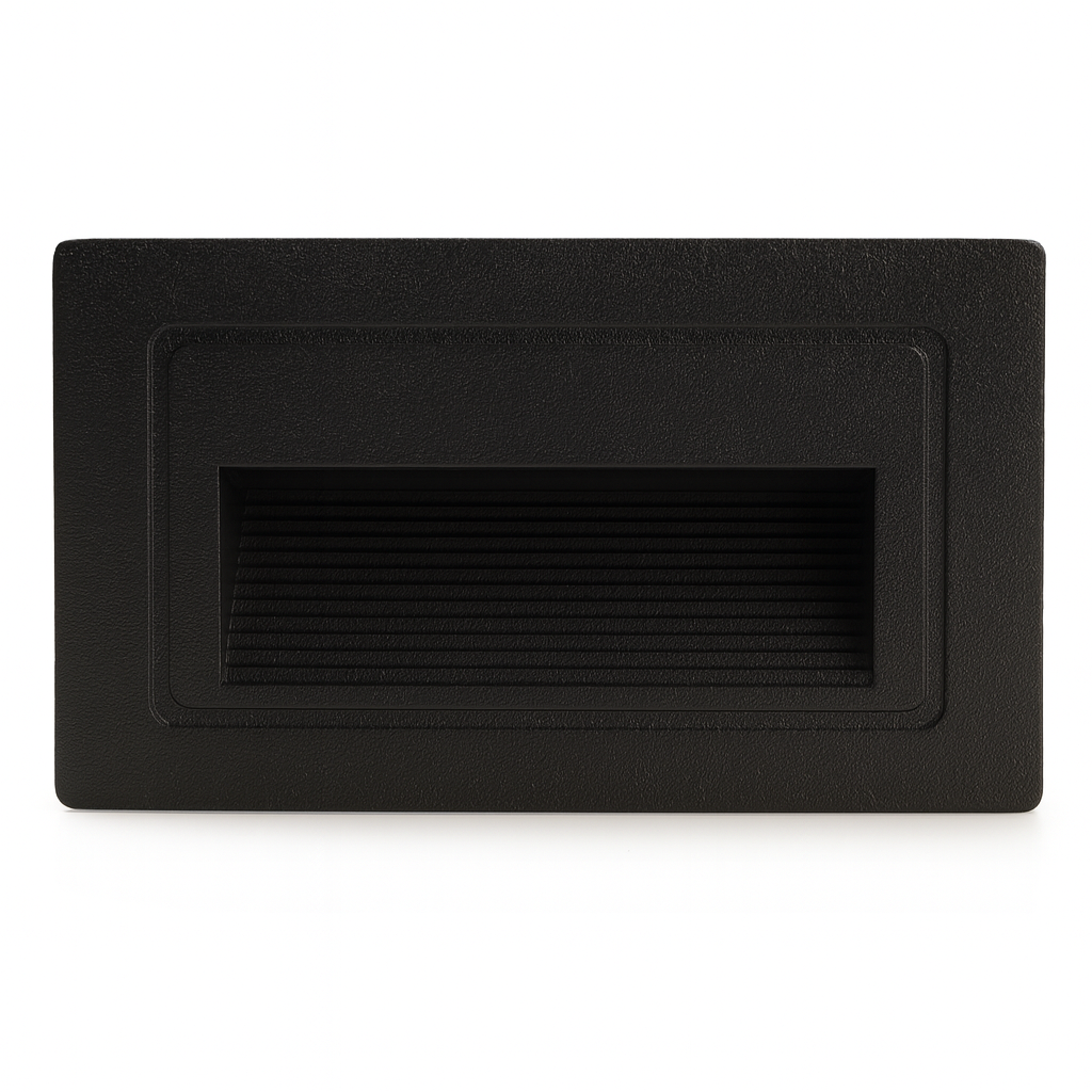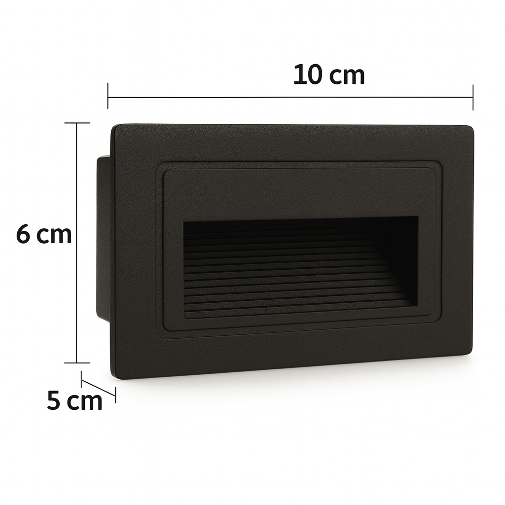Fabricado em plástico de alta resistência, o balizador combina baixo consumo de energia com excelente eficiência luminosa, entregando 240 lúmens em um corpo discreto de apenas 6x10x5 cm — perfeito para embutir em paredes ou degraus de forma elegante e funcional.