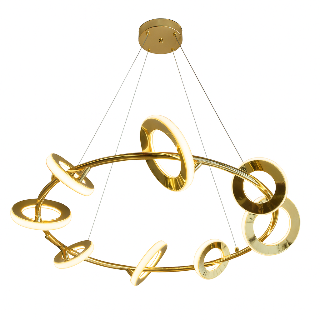 Com acabamento em dourado espelhado, estrutura em metal e acrílico de alta qualidade e LED integrado 3000K, o Circelt II oferece uma iluminação suave e aconchegante, ideal para criar atmosferas acolhedoras e sofisticadas. Sua potência de 66W garante excelente eficiência luminosa, iluminando o ambiente com beleza e funcionalidade ao mesmo tempo.