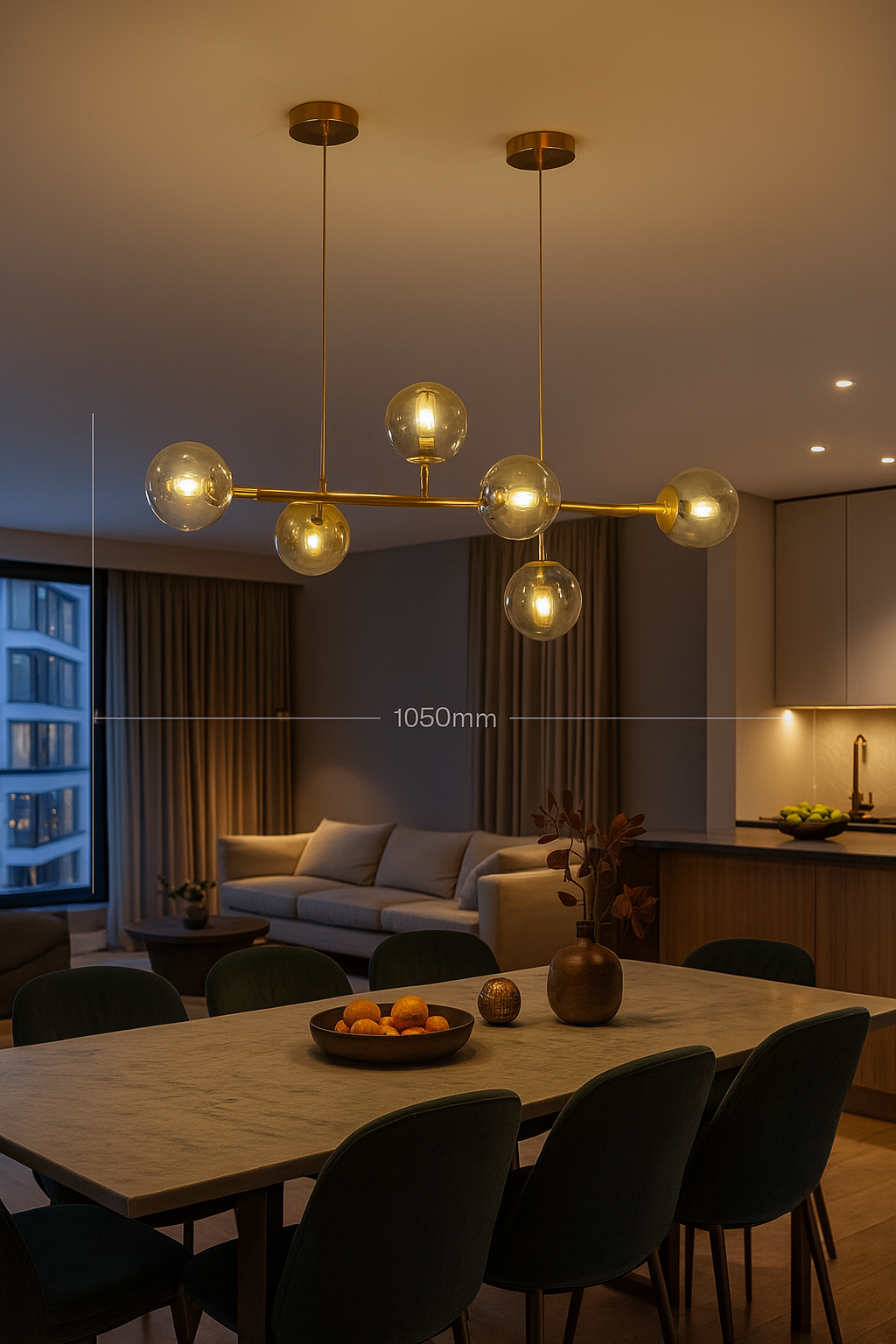 Com 1 metro de largura, ele oferece proporções perfeitas para iluminar mesas ou bancadas com estilo, enquanto o soquete E27 garante versatilidade na escolha da lâmpada e facilidade na manutenção. Seu corpo em alumínio proporciona durabilidade e leveza, e o acabamento dourado confere um brilho elegante e atemporal.