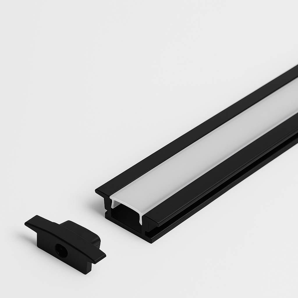 O Perfil para Fita LED Preto em Alumínio 24x07 é a escolha perfeita para quem busca um acabamento sofisticado, com instalação limpa e profissional. Fabricado em alumínio de alta qualidade, garante excelente dissipação térmica, prolongando a vida útil da fita de LED e proporcionando uma iluminação homogênea e refinada.
