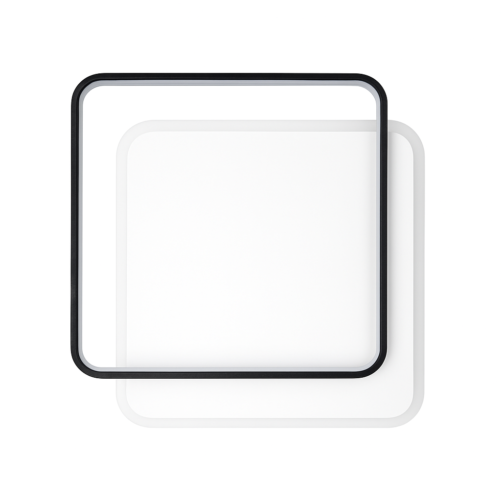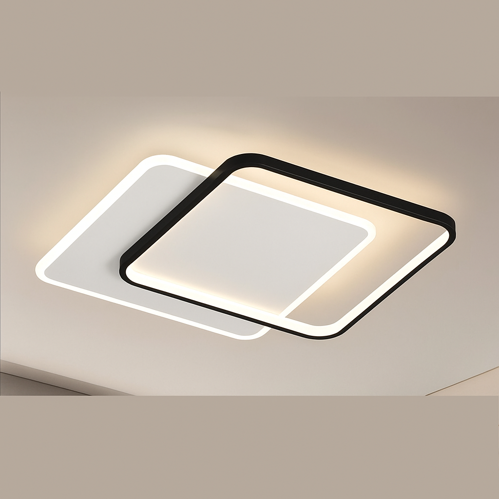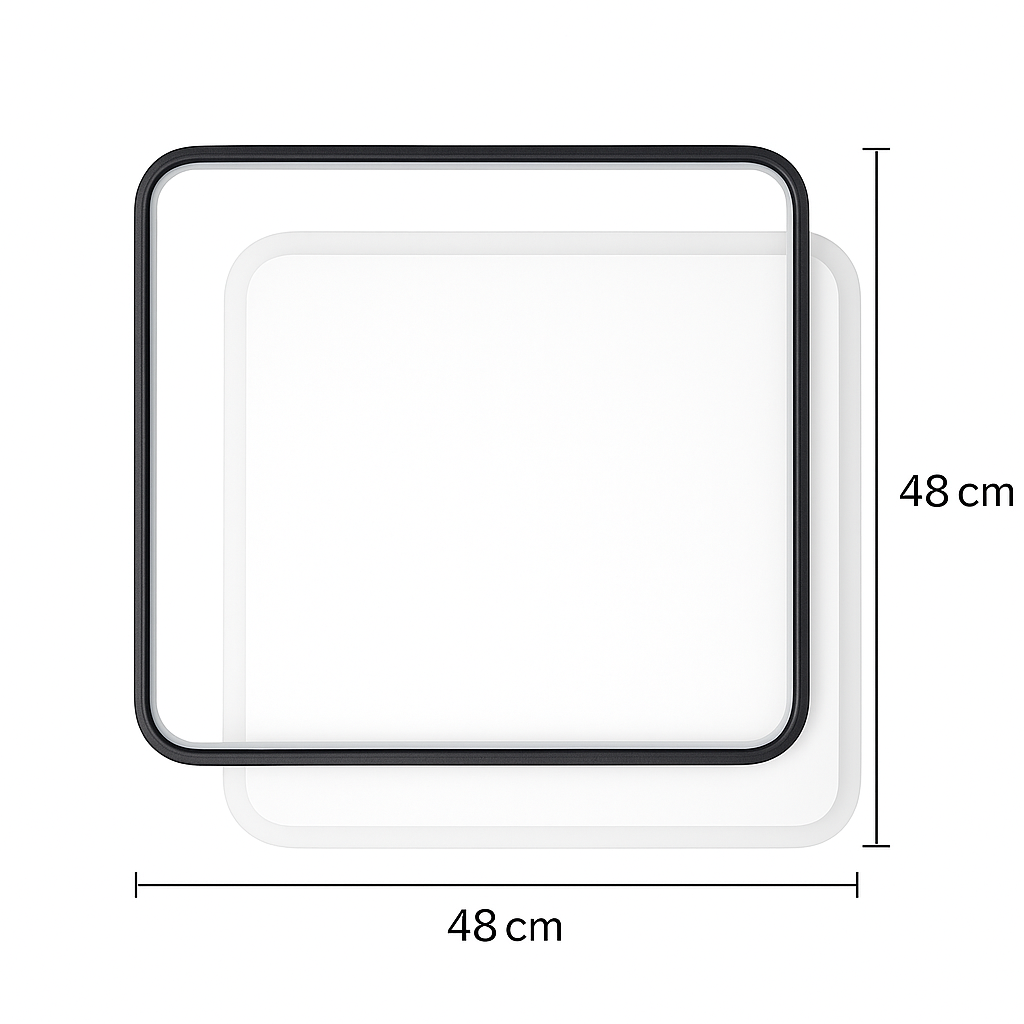 Compacta e versátil, a luminária mede 48 × 48 cm, sendo uma excelente opção para quem busca equilíbrio entre design, conforto visual e praticidade na instalação.